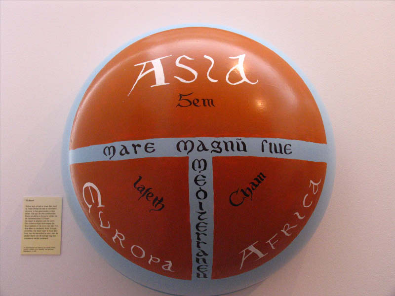 continenten zien gescheiden door een zee. Aan de andere kant, die we niet zien, is nog een continent maar daar wist Sidrac het fijne niet van. Even verderop kun je zien hoe de klimaatzones verdeeld zijn en waar mensen wonen met welke huidskleur want ook daarvoor had Sidrac een mooi